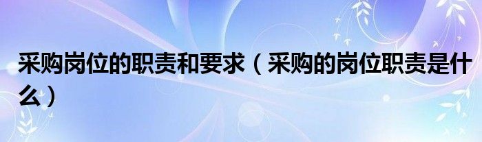 采购岗位的职责和要求(采购的岗位职责是什么)