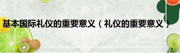 基本国际礼仪的重要意义(礼仪的重要意义)