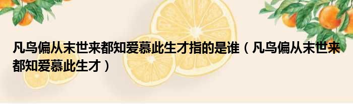 凡鸟偏从末世来都知爱慕此生才指的是谁(凡鸟偏从末世来都知爱慕此生才)