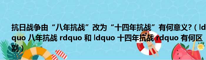抗日战争由“八年抗战”改为“十四年抗战”有何意义?(ldquo 八年抗战 rdquo 和 ldquo 十四年抗战 rdquo 有何区别)