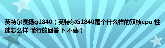 英特尔赛扬g1840(英特尔G1840是个什么样的双核cpu 性能怎么样 懂行的回答下 不要)