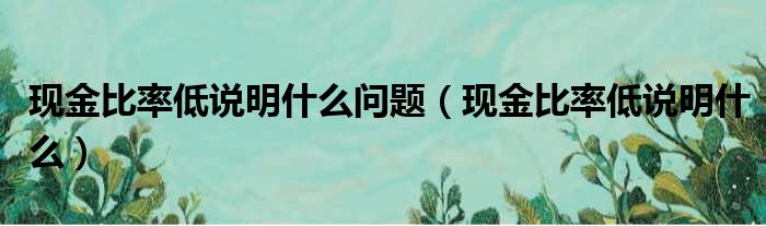 导读 大家好,小东方来为大家解答以上的问题。现金比率低说明什么问题,现金比率低说明什么这个很多人还不知道,现在让我们一起来看看吧!1、现金