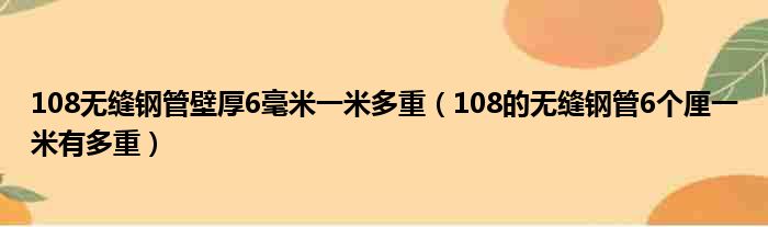 108无缝钢管壁厚6毫米一米多重(108的无缝钢管6个厘一米有多重)