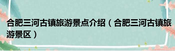 1、1景点属地 安徽省合肥市详细地址 位于肥西县东南部,地处合肥、六安、巢湖三个地市交界处2交通 11月1日,从肥西县城上派到三河古镇将开通公交车 (699路公交车)3景点介绍三河古镇已有2500年的历史了,早在春秋战国时候,就已初具规模,古时称为“鹊岸”。