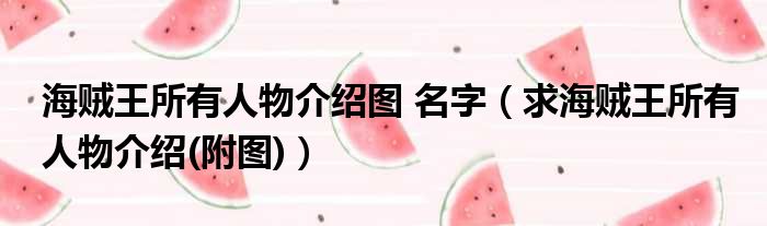 海贼王所有人物介绍图 名字(求海贼王所有人物介绍(附图))
