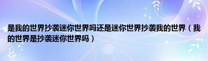 是我的世界抄袭迷你世界吗还是迷你世界抄袭我的世界(我的世界是抄袭迷你世界吗)