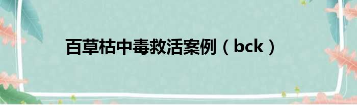 大家好,小东方来为大家解答以上的问题。百草枯中毒救活案例,bck这个很多人还不知道,现在让我们一起来看看吧!