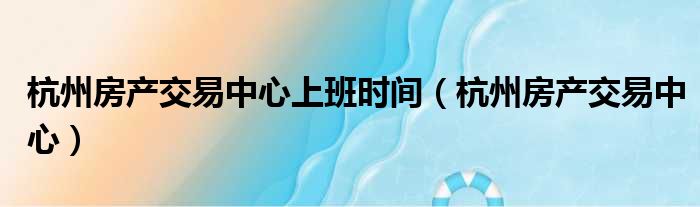 杭州房产交易中心上班时间(杭州房产交易中心)