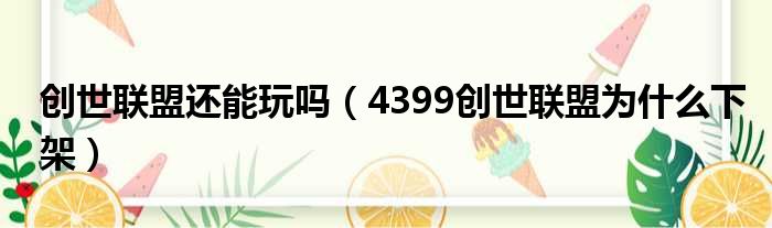 创世联盟还能玩吗(4399创世联盟为什么下架)