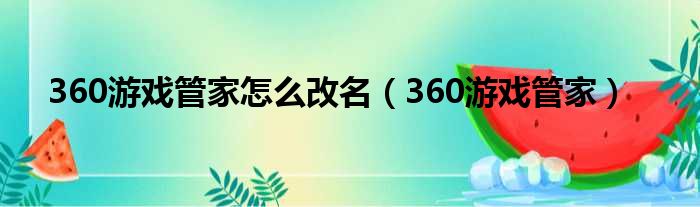 导读 大家好,小东方来为大家解答以上的问题。360游戏管家怎么改名,360游戏管家这个很多人还不知道,现在让我们一起来看看吧!1、不知道你说的是