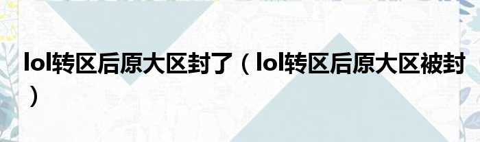 大家好,小东方来为大家解答以上的问题。lol转区后原大区封了,lol转区后原大区被封这个很多人还不知道,现在让我们一起来看看吧!