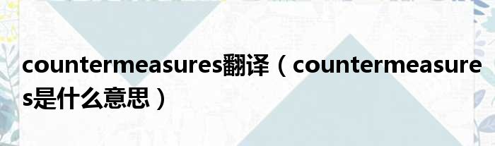 大家好,小东方来为大家解答以上的问题。countermeasures翻译,countermeasures是什么意思这个很多人还不知道,现在让我们一起来看看吧!