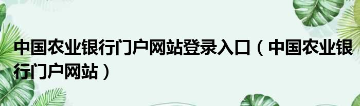 中国农业银行门户网站登录入口(中国农业银行门户网站)