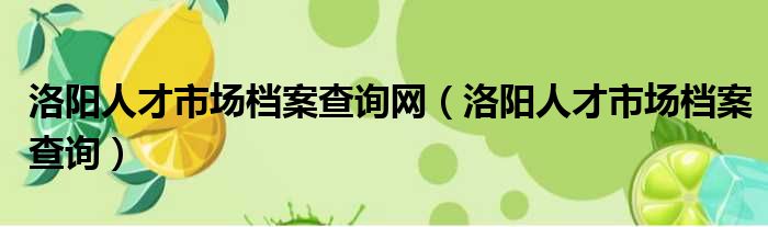 洛阳人才市场档案查询网(洛阳人才市场档案查询)