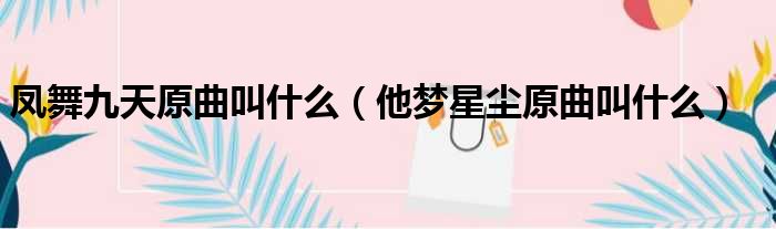 凤舞九天原曲叫什么(他梦星尘原曲叫什么)