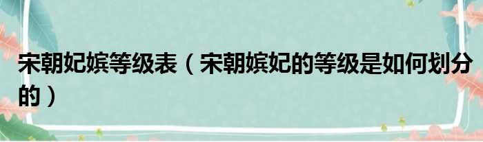 宋朝妃嫔等级表(宋朝嫔妃的等级是如何划分的)