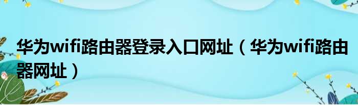 华为wifi路由器登录入口网址(华为wifi路由器网址)