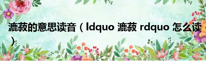 漉菽的意思读音(ldquo 漉菽 rdquo 怎么读)