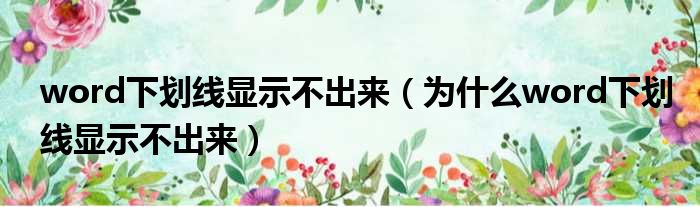 导读 大家好,小东方来为大家解答以上的问题。word下划线显示不出来,为什么word下划线显示不出来这个很多人还不知道,现在让我们一起来看看吧!1