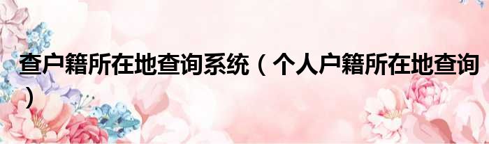 大家好,小东方来为大家解答以上的问题。查户籍所在地查询系统,个人户籍所在地查询这个很多人还不知道,现在让我们一起来看看吧!