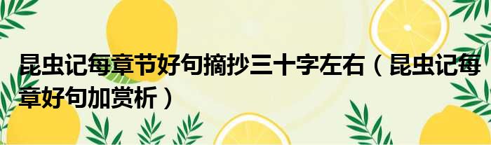 昆虫记每章节好句摘抄三十字左右(昆虫记每章好句加赏析)