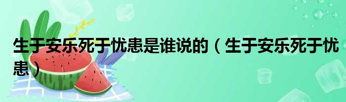生于安乐死于忧患是谁说的(生于安乐死于忧患)
