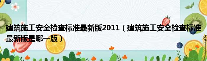 建筑施工安全检查标准最新版2011(建筑施工安全检查标准最新版是哪一版)