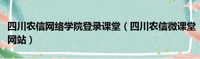 四川农信网络学院登录课堂(四川农信微课堂网站)