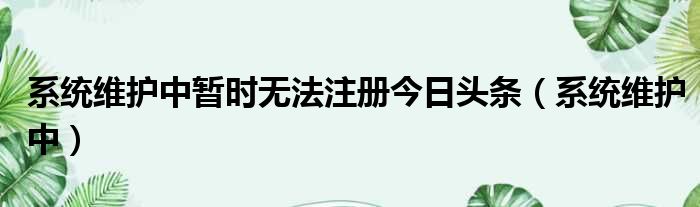 大家好,小东方来为大家解答以上的问题。系统维护中暂时无法注册今日头条,系统维护中这个很多人还不知道,现在让我们一起来看看吧!