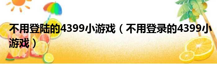 不用登陆的4399小游戏(不用登录的4399小游戏)