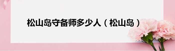 大家好,小东方来为大家解答以上的问题。松山岛守备师多少人,松山岛这个很多人还不知道,现在让我们一起来看看吧!