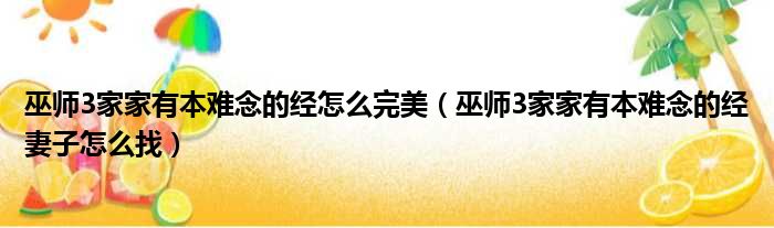 巫师3家家有本难念的经怎么完美(巫师3家家有本难念的经妻子怎么找)