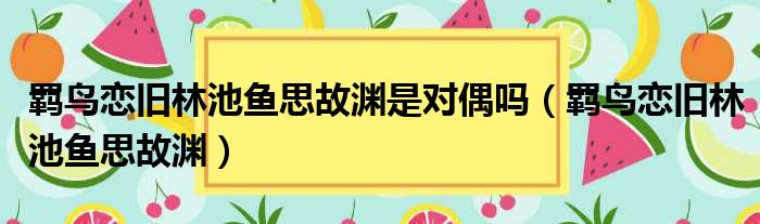 羁鸟恋旧林池鱼思故渊是对偶吗(羁鸟恋旧林池鱼思故渊)