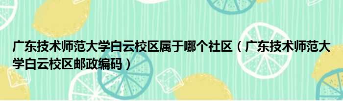 广东技术师范大学白云校区属于哪个社区(广东技术师范大学白云校区邮政编码)