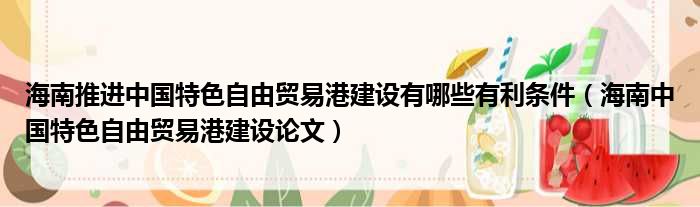 海南推进中国特色自由贸易港建设有哪些有利条件(海南中国特色自由贸易港建设论文)