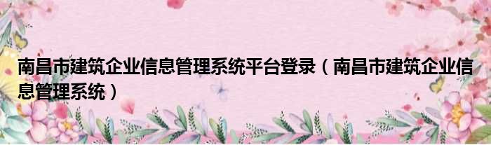 南昌市建筑企业信息管理系统平台登录(南昌市建筑企业信息管理系统)