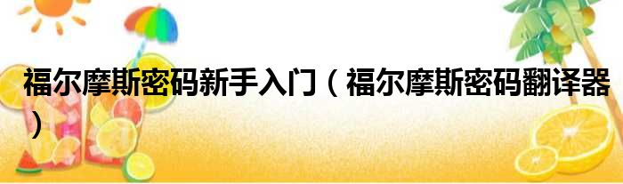 福尔摩斯密码新手入门(福尔摩斯密码翻译器)