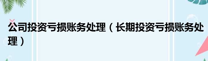 公司投资亏损账务处理(长期投资亏损账务处理)