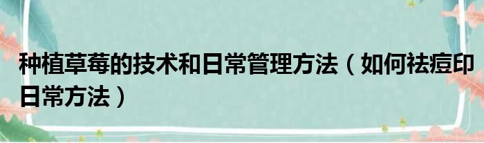 种植草莓的技术和日常管理方法(如何祛痘印日常方法)