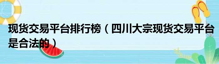 导读 大家好,小东方来为大家解答以上的问题。现货交易平台排行榜,四川大宗现货交易平台是合法的这个很多人还不知道,现在让我们一起来看看吧!1