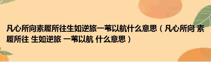凡心所向素履所往生如逆旅一苇以航什么意思(凡心所向 素履所往 生如逆旅 一苇以航 什么意思)