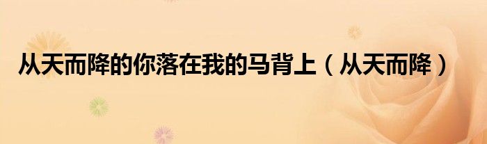 导读 大家好,小东方来为大家解答以上的问题。从天而降的你落在我的马背上,从天而降这个很多人还不知道,现在让我们一起来看看吧!1、《从天儿降