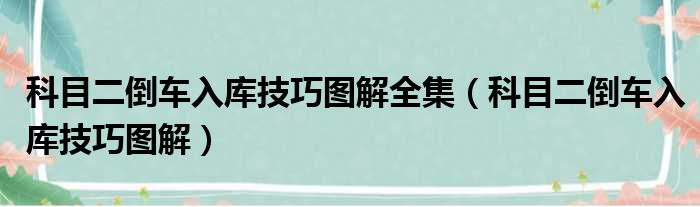 科目二倒车入库技巧图解全集(科目二倒车入库技巧图解)