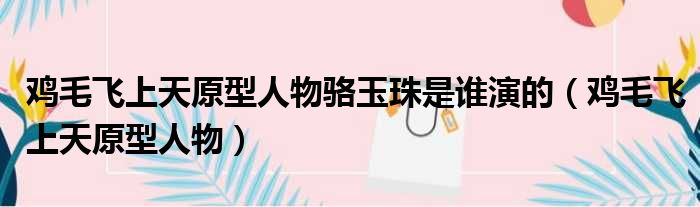导读 大家好,小东方来为大家解答以上的问题。鸡毛飞上天原型人物骆玉珠是谁演的,鸡毛飞上天原型人物这个很多人还不知道,现在让我们一起来看看吧
