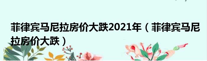 菲律宾马尼拉房价大跌2021年(菲律宾马尼拉房价大跌)