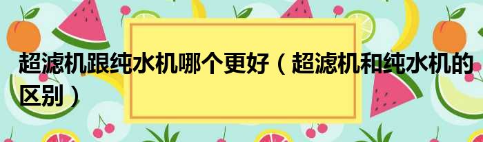 超滤机跟纯水机哪个更好(超滤机和纯水机的区别)