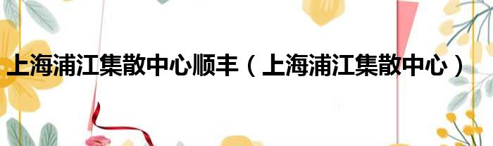 上海浦江集散中心顺丰(上海浦江集散中心)