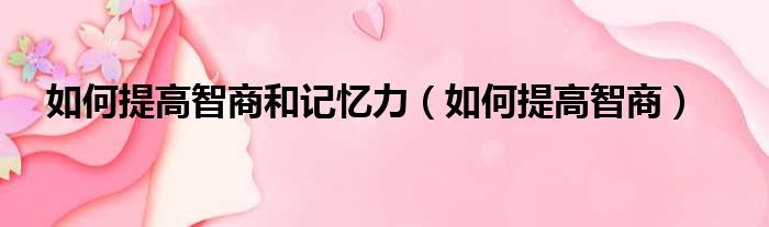 如何提高智商和记忆力(如何提高智商)