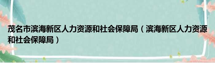茂名市滨海新区人力资源和社会保障局(滨海新区人力资源和社会保障局)