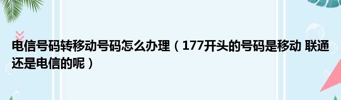 导读 大家好,小东方来为大家解答以上的问题。电信号码转移动号码怎么办理,177开头的号码是移动 联通还是电信的呢这个很多人还不知道,现在让我